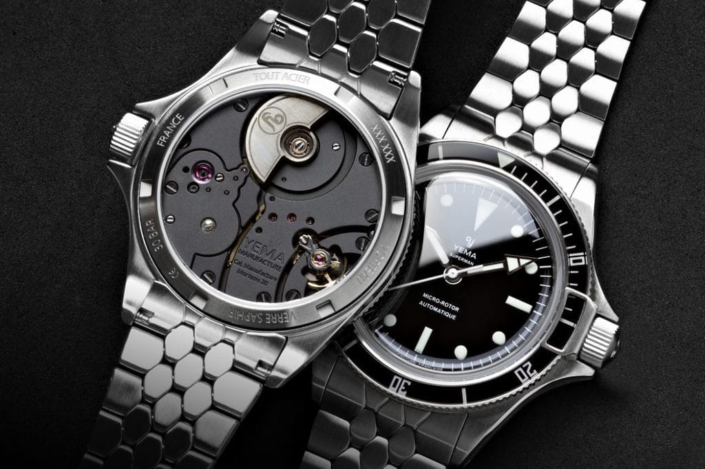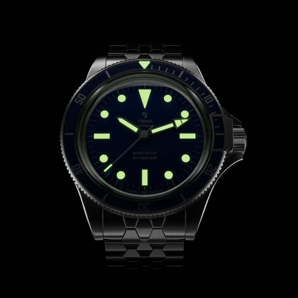 Les cadrans Superman Slim CMM.20 en finition “glossy” arborent fièrement toutes les inscriptions en français et notamment la mention MANUFACTURE FRANÇAISE à 6h en clin d’œil au nouveau positionnement de YEMA.