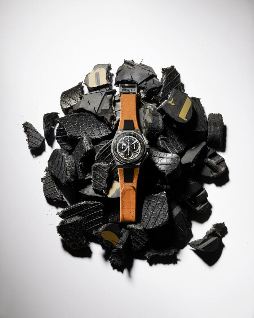 Conformément au message de durabilité qui est au cœur même de l’Extreme E et de l’initiative ZENITH HORIZ-ON, la montre DEFY Extreme E « Island X Prix » est livrée avec un bracelet en caoutchouc doté de fragments de pneus Continental CrossContact recyclés qui ont été utilisés lors des courses de la première saison. Assorti aux accents orange vif de l’Island X Prix sur le cadran, le bracelet en velcro présente un élément central en caoutchouc noir entouré d’une incrustation en caoutchouc orange à effet cordura. L’édition DEFY Extreme E « Island X Prix » est également livrée avec deux bracelets supplémentaires en caoutchouc noir et en velcro noir, facilement interchangeables sans outils grâce à l’ingénieux et intuitif mécanisme de changement rapide de bracelet dont le fond du boîtier est doté.
