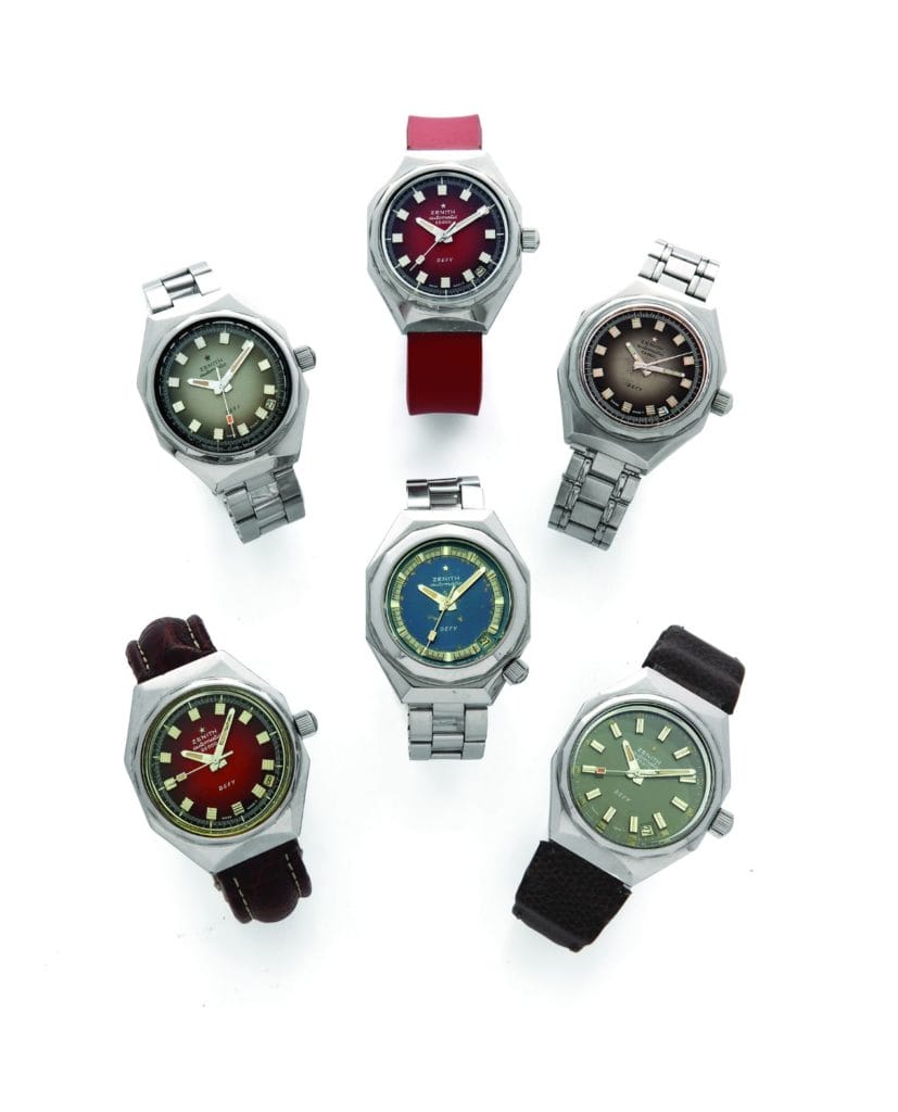 « Ces montres symbolisent le sport-chic de la manufacture Zenith dans les années 70. Elles sont le pendant de la production du Locle des Nautilus et Royal Oak, à des estimations bien plus raisonnables ! (Entre 800 et 1500 euros) »