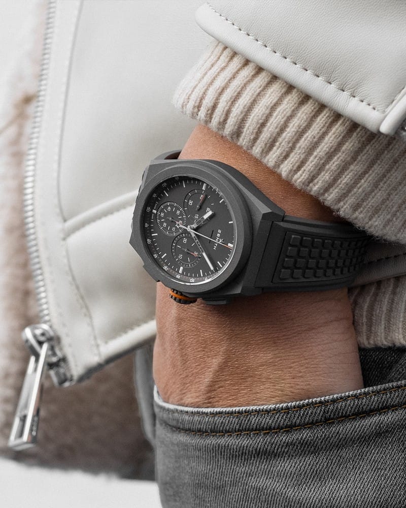 Lorsque deux partenaires qui sont des pionniers dans leurs domaines respectifs se réunissent, les résultats peuvent être inattendus et passionnants. Coïncidant avec la sortie de la nouvelle génération de Land Rover Defender, une refonte totale de l’emblématique véhicule tout-terrain avec son évolution la plus significative à ce jour, Zenith et le célèbre constructeur automobile britannique renforcent leur partenariat avec leur montre collaborative la plus originale jusqu’ici : la DEFY 21 Land Rover Edition.Cette édition est une réinterprétation à la fois musclée et furtive du chronographe haute fréquence El Primero du 21e siècle, incarnant l’esprit de résilience de la nouvelle Land Rover Defender qui allie le summum de la robustesse et du confort. Edition limitée à 250 pièces, elle représente une refonte complète du chronographe au 1/100e de seconde avec un look brut et minimaliste. Réalisé en titane microbillé, le boîtier absorbe la lumière sous tous les angles pour mieux accentuer ses surfaces facettées. Associé à un cadran gris fermé assorti, l’affichage redessiné présente pour la première fois dans une DEFY 21 un guichet de réserve de marche linéaire, avec de toutes petites touches de couleur pour une meilleure lisibilité.