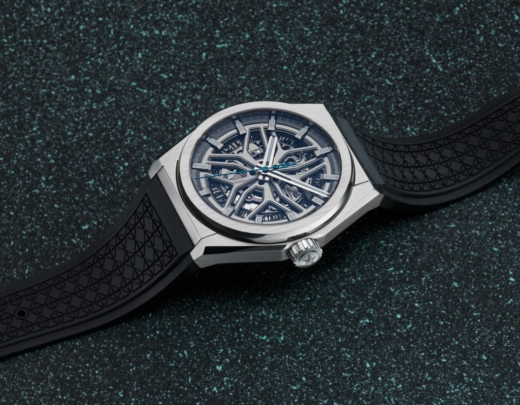 Le cadran squeletté de ce garde-temps sophistiqué s’inspire pour sa part du style sculptural des jantes de l’Evoque, alors que sellerie cuir à effet matelassé avec son motif “diamants” se retrouve dans bracelet caoutchouc. Équipée d’un nouveau mouvement Elite également squeletté, la première réinterprétation proposée par Zenith de sa collection Defy Classic rayonne d’une allure unique fondée sur un design inspiré.