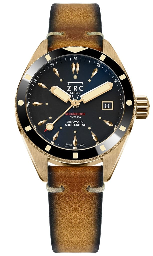 - SECURICODE Diver 300 Bronze Edition Limitée avec date : Pour ce modèle en édition limitée, ZRC opte pour un boîtier en bronze. Les aiguilles et index, revêtus de Super-LumiNova® coquille d’œuf, s’harmonisent avec le boîtier, et le tout se porte sur un bracelet en cuir vintage.